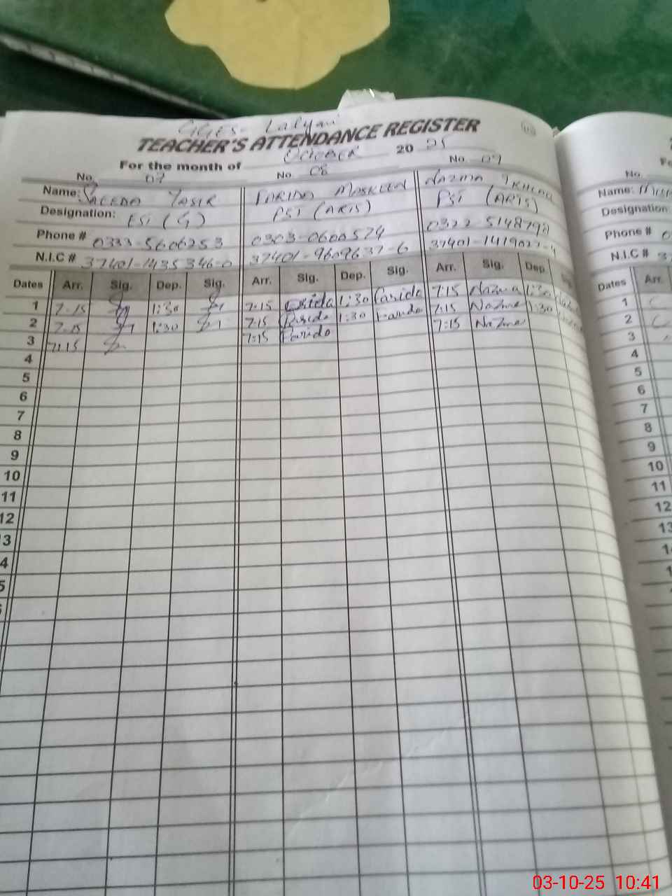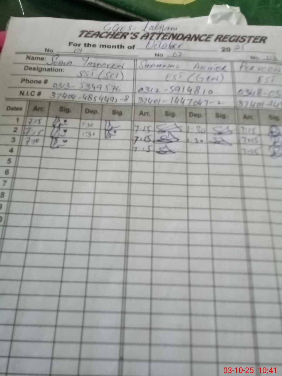 | Name: So**** Ya**** Designation: (School Headmaster's/Headmistress's) SST Phone/Cell Number: 03**** |