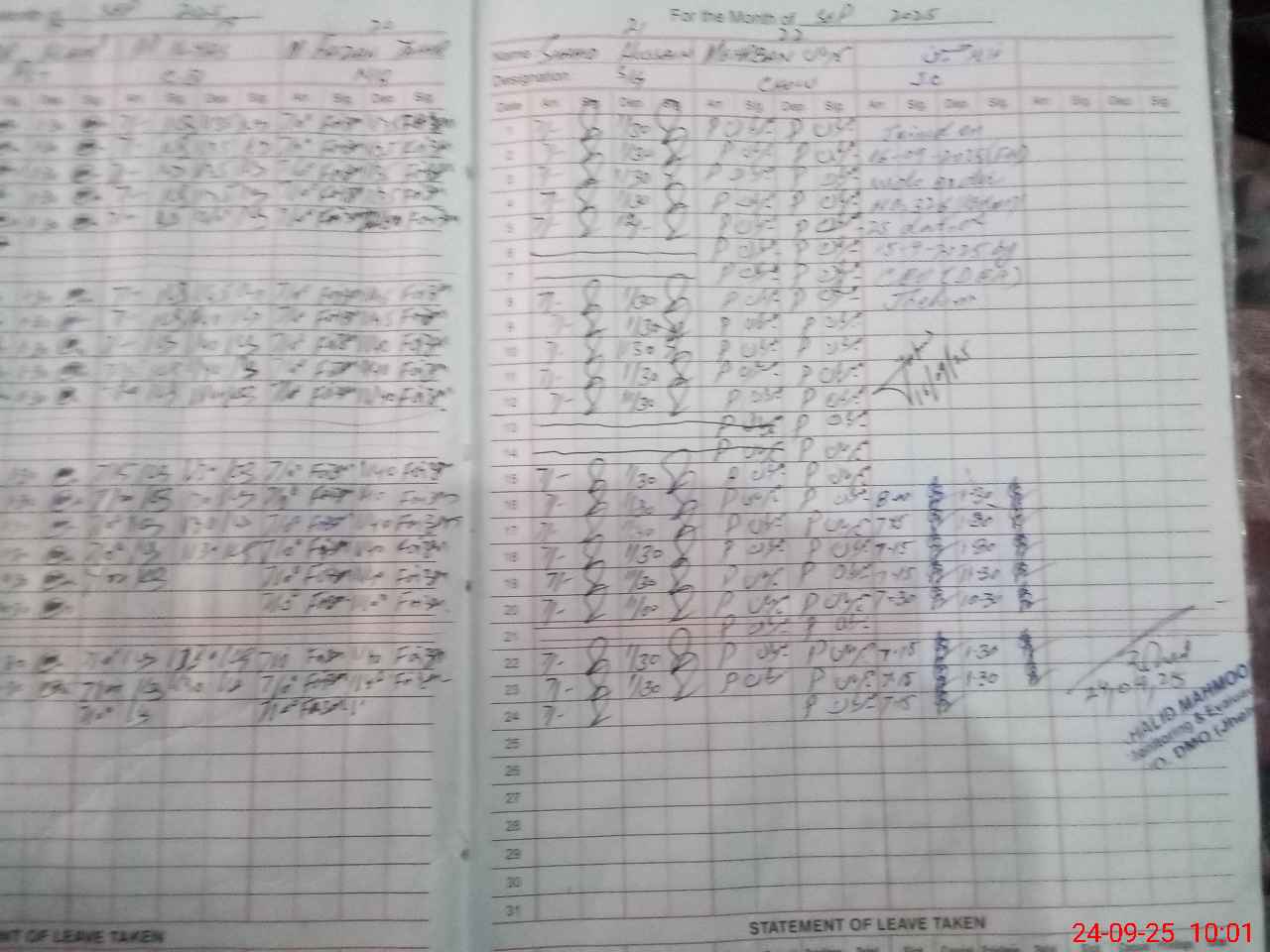 | CNIC | Full Name | Designation | R/C | Absence during last cal. month |