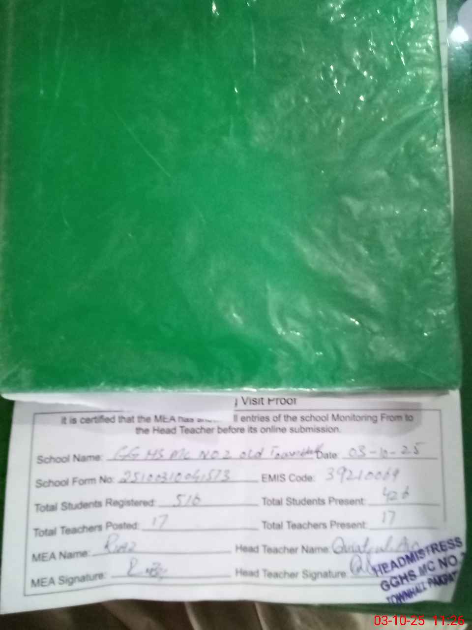 | EMIS Code: 39210064 | Name of School: GGHS MC NO. 2 OLD TOWN HALL PAKPATTAN | |||