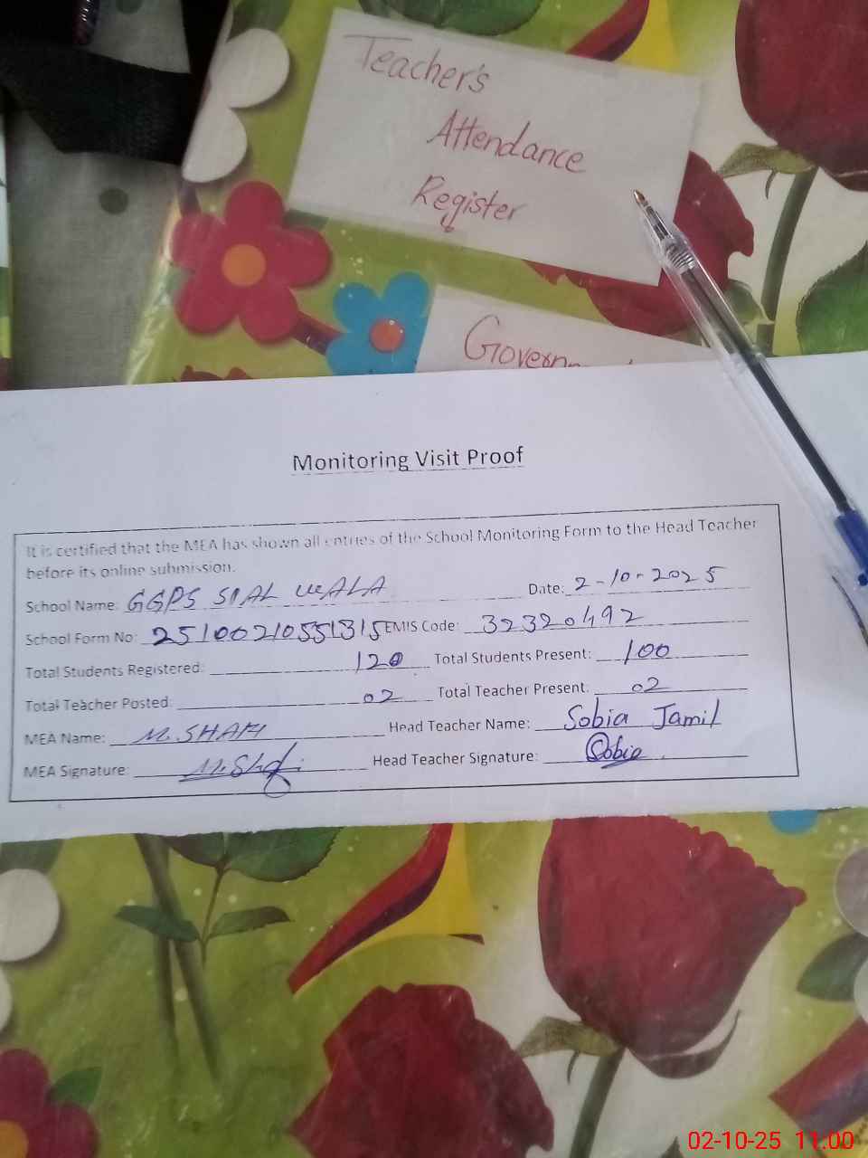 | EMIS Code: 32320492 | Name of School: GGPS SIAL WALA | |||