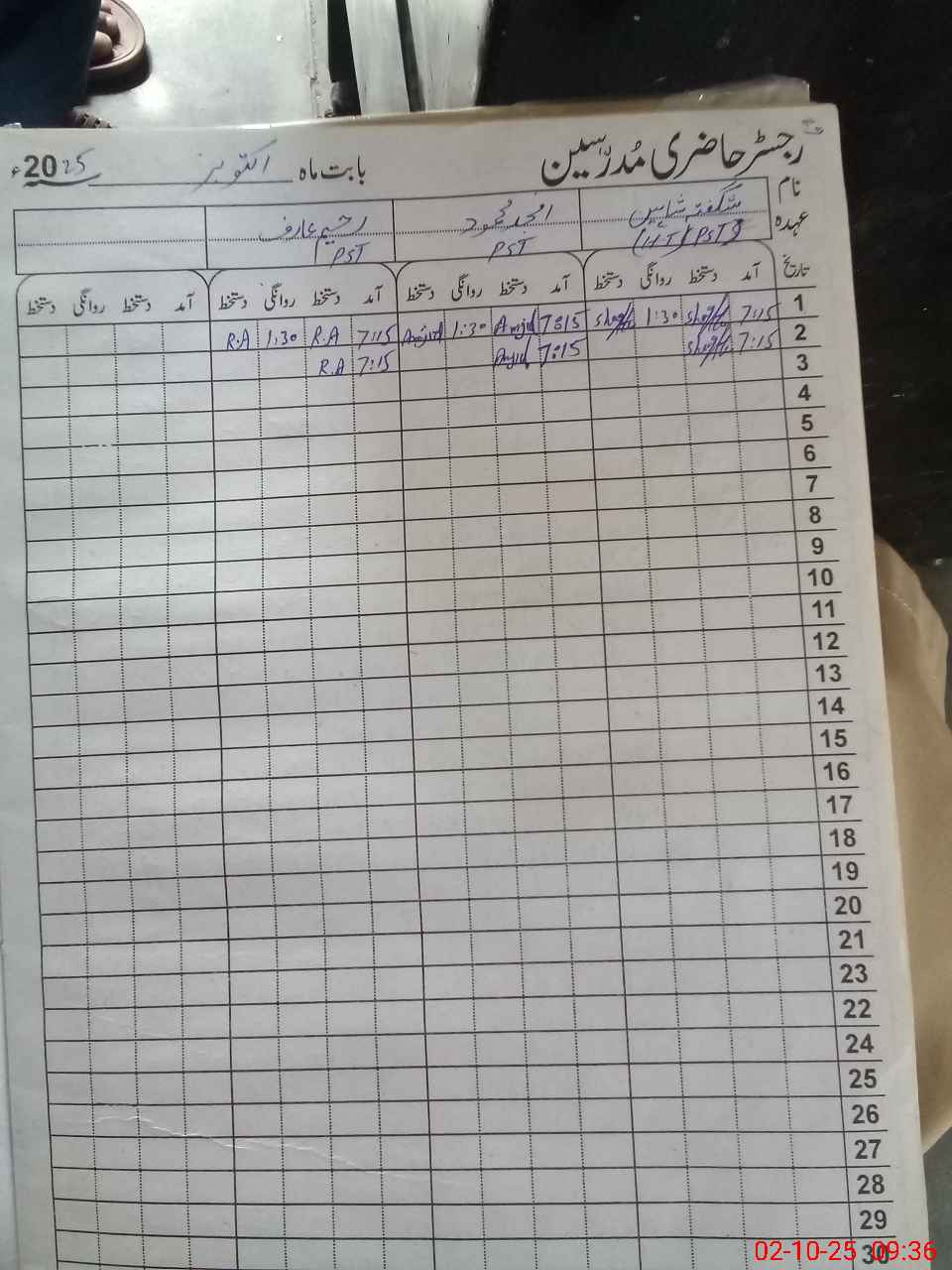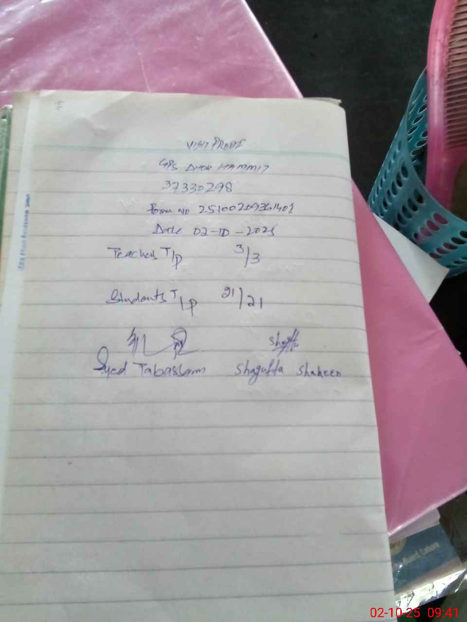 | Name: SH**** SH**** Designation: (School Headmaster's/Headmistress's) PST Phone/Cell Number: 03**** |