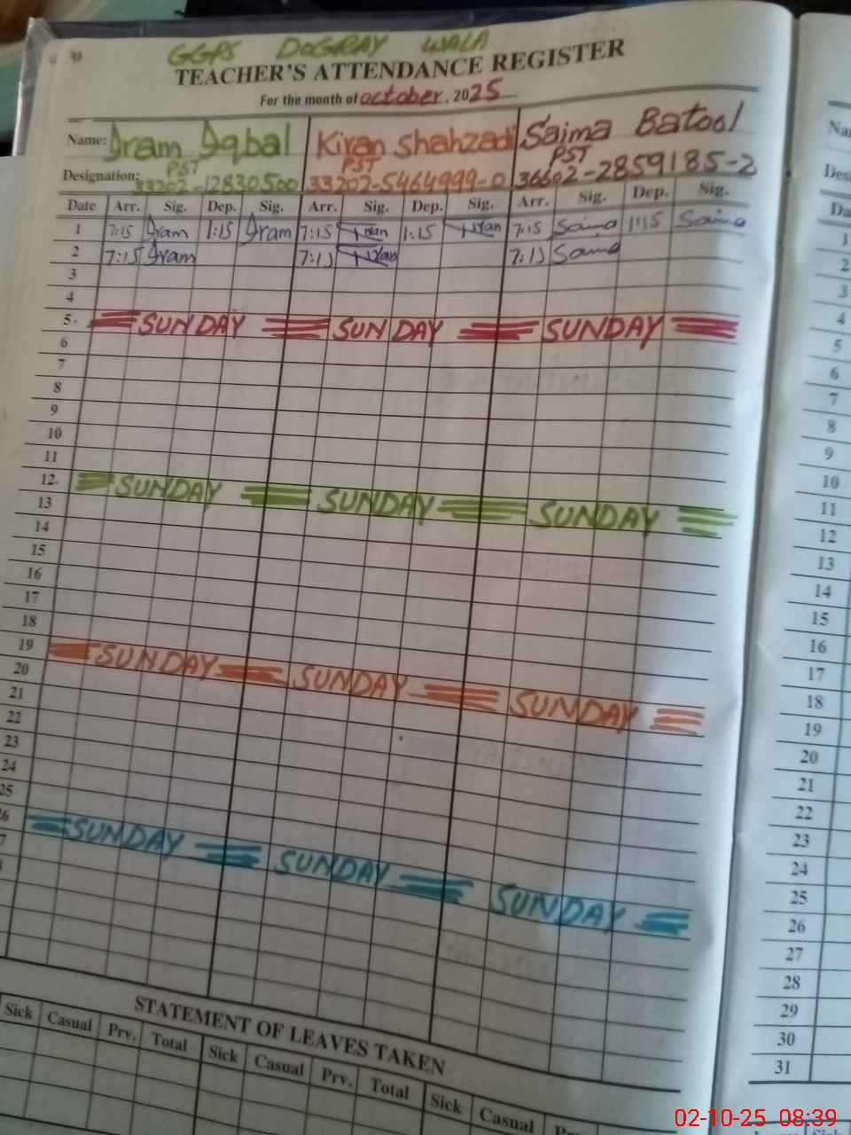 | Name: AS**** PE**** Designation: (School Headmaster's/Headmistress's) PST Phone/Cell Number: 03**** |