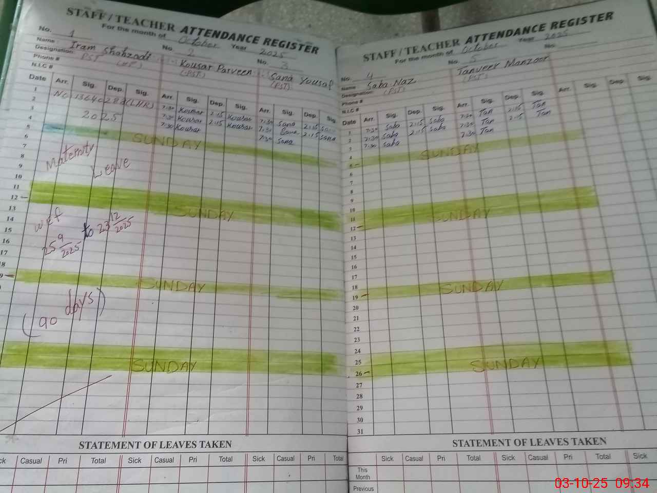| Leave | Duty | Absent | Maternity | Medical | Ex- Pak |