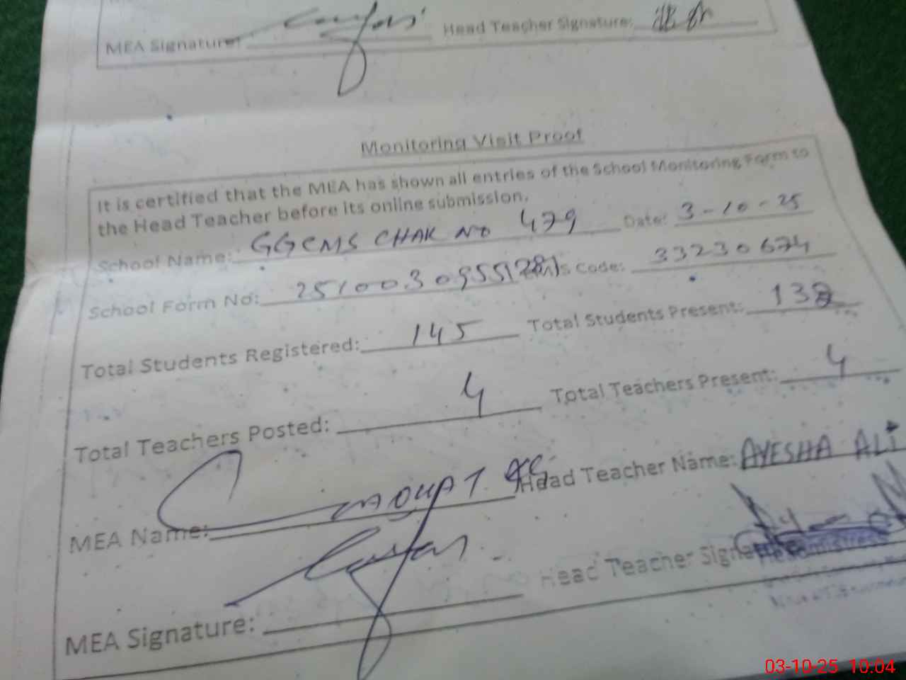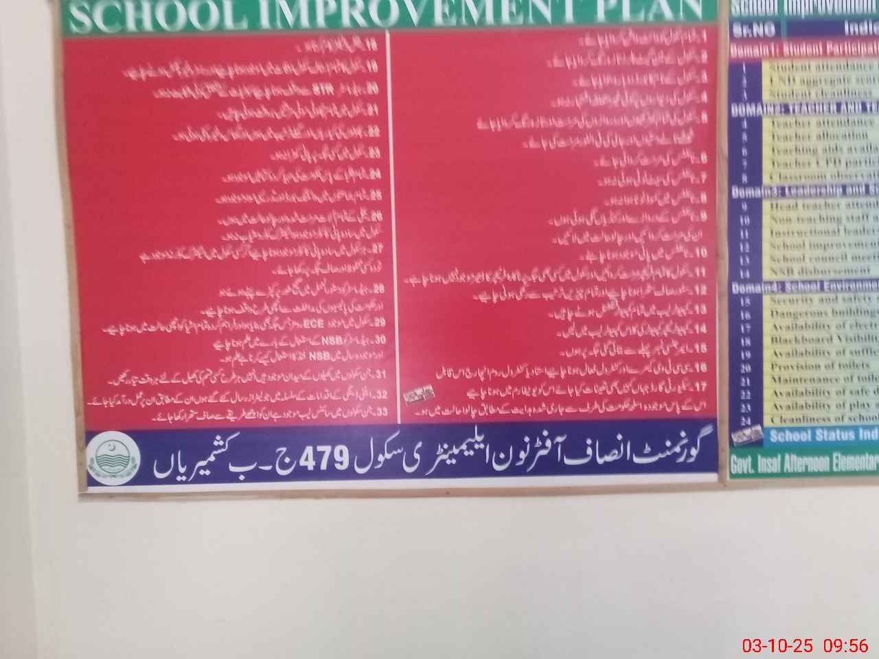 | EMIS Code: 33230674 | Name of School: GGCMS CHAK NO. 479 JB KASHMIRIAN | |||