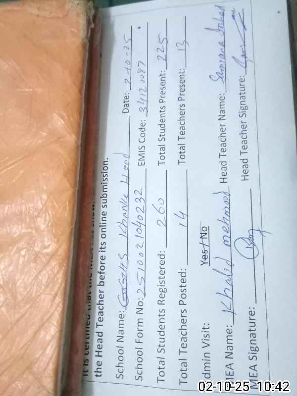 | EMIS Code: 34120087 | Name of School: GGHS KHANKE HEAD | |||