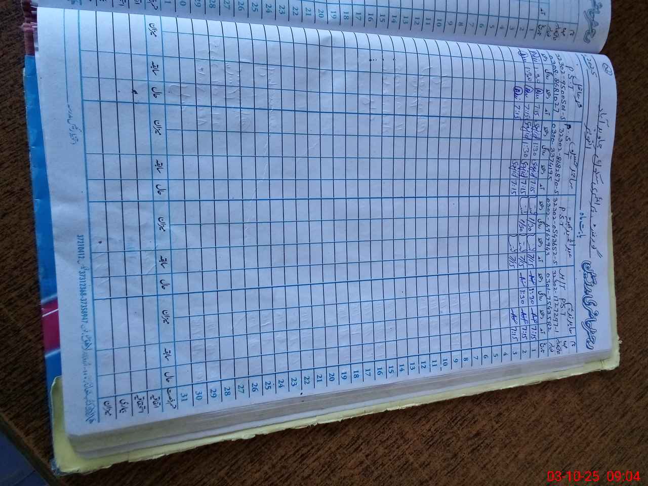 | CNIC | Full Name | Designation | R/C | Absence During Last Calender Month |