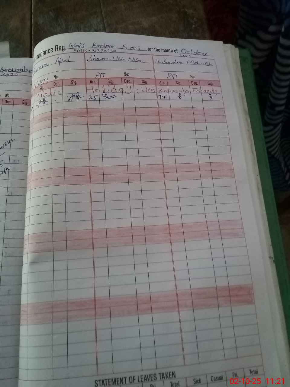 | 31**** | Na**** No**** | PST | Regular | 0 | 0 | 0 | 0 | 0 | 0 | 0 | 0 | 0 | Absent (Un-Authorized) |