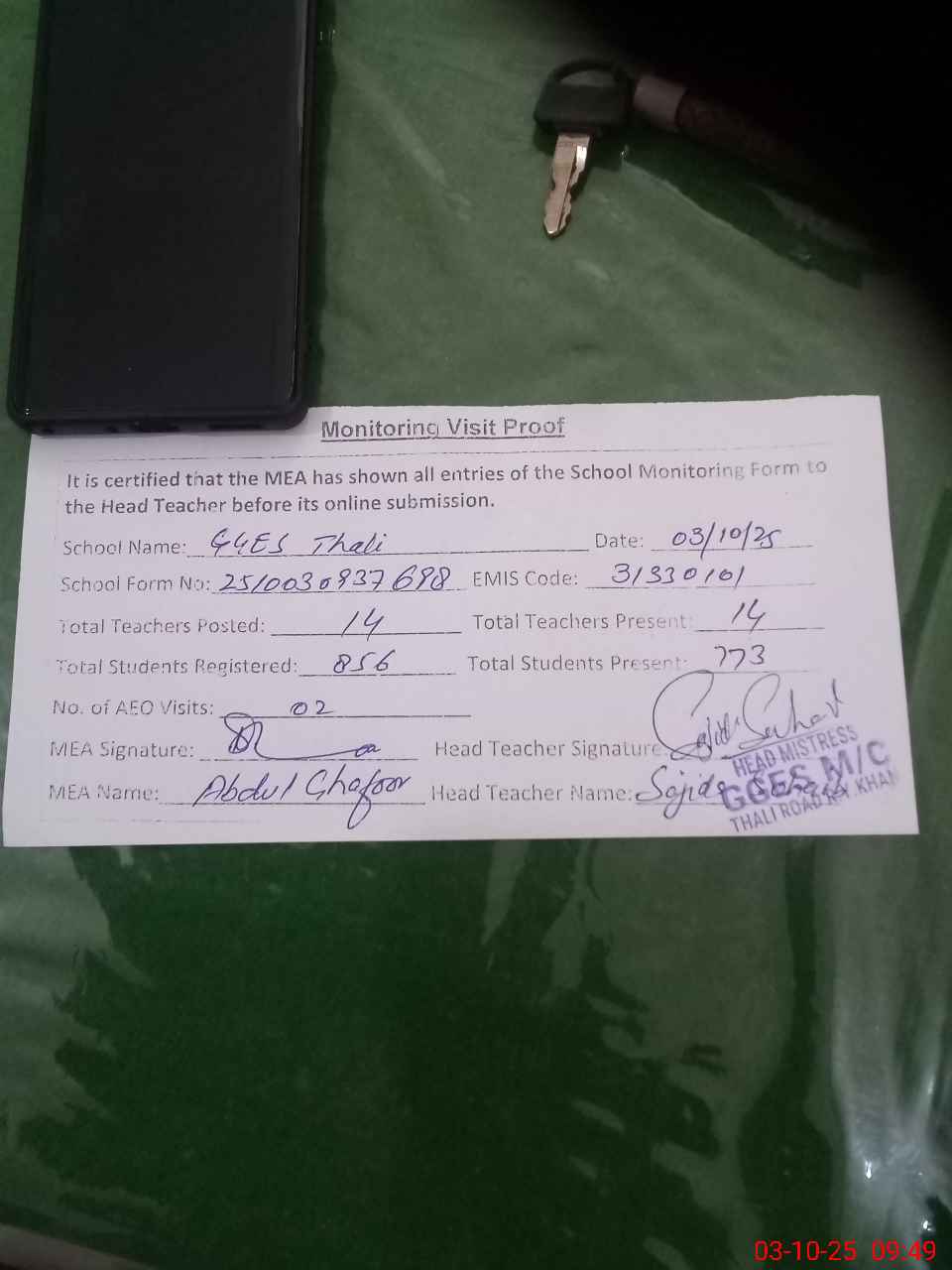 | EMIS Code: 31330101 | Name of School: GGES MC THALI ROAD | |||