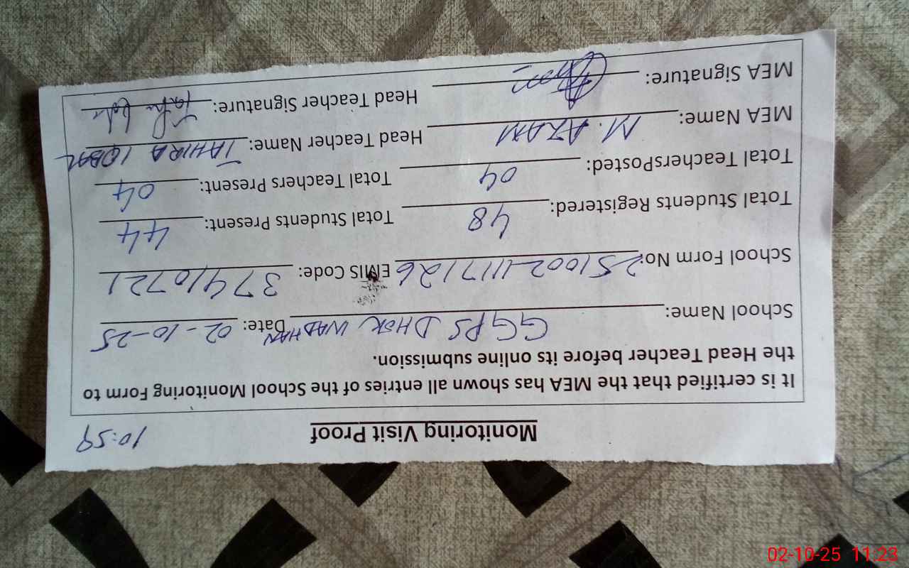 | Monitoring Date: 02-10-2025 | Start Time: 02-10-2025 10:59 AM | End Time: 02-10-2025 11:25 AM | Name of MEA: Mu**** Az**** | |