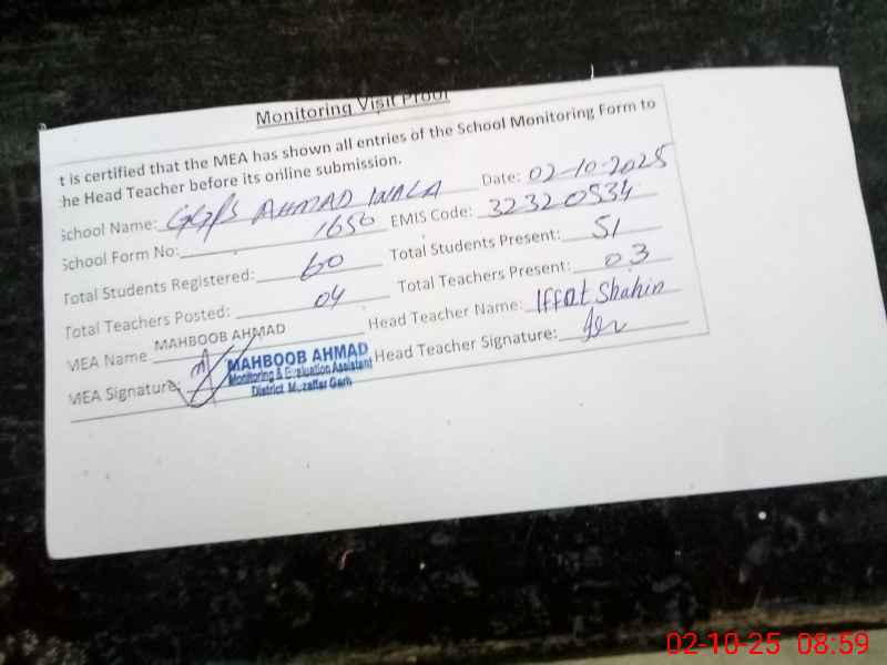 | EMIS Code: 32320534 | Name of School: GGPS AHMAD WALA | |||