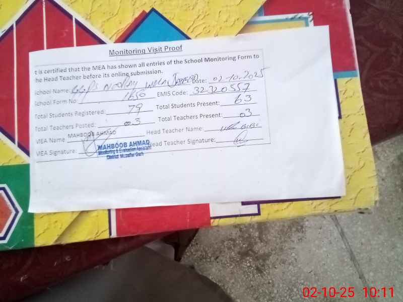 | EMIS Code: 32320557 | Name of School: GGPS NOORAY WALA JADEED | |||