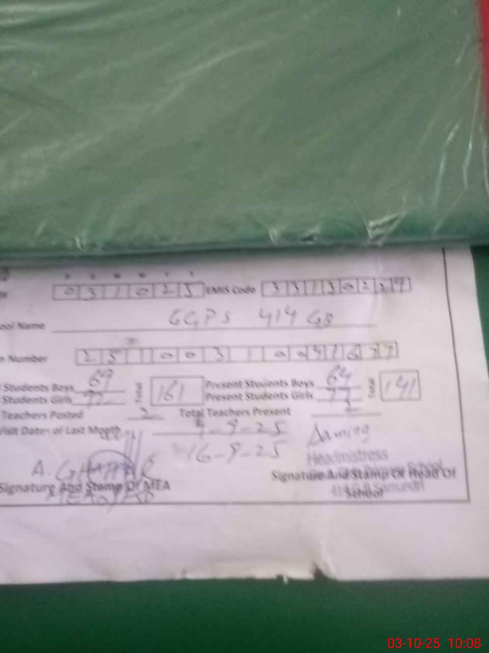 | Attendance Register | Head Teacher | MEA with School | Visit Proof |
