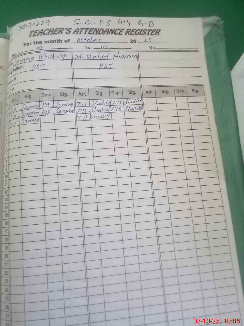 | Name: SA**** MU**** Designation: (School Headmaster's/Headmistress's) PST Phone/Cell Number: 03**** |