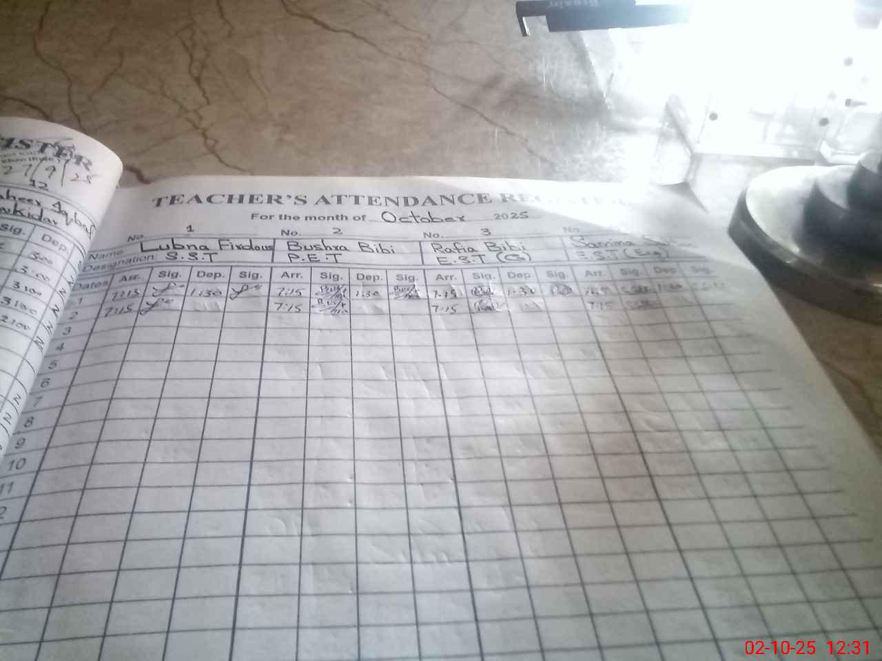 | Monitoring Date: 02-10-2025 | Start Time: 02-10-2025 12:22 PM | End Time: 02-10-2025 12:55 PM | Name of MEA: Gh**** Ha**** | |