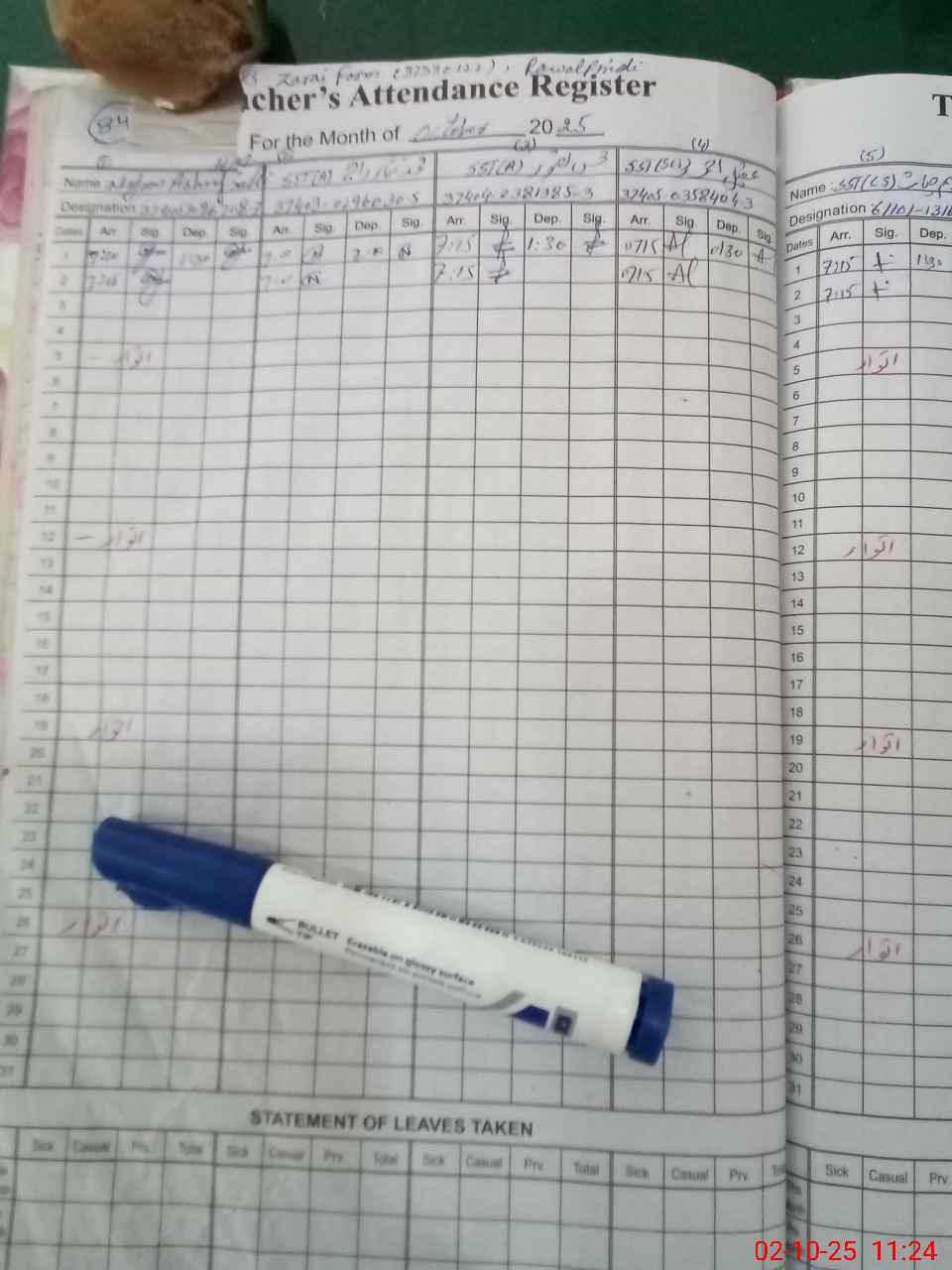 | CNIC | Full Name | Designation | R/C | Absence During Last Calender Month |