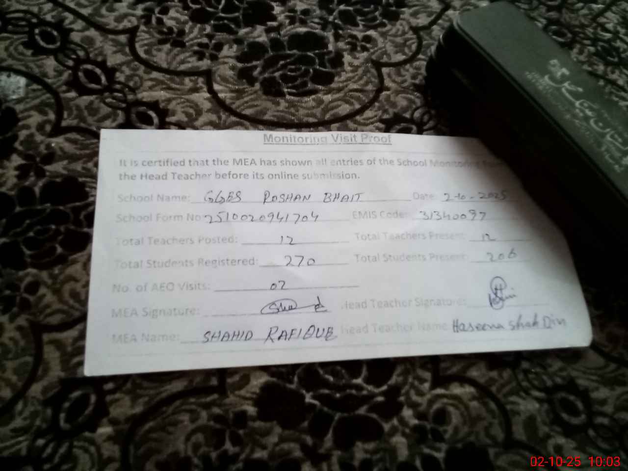| EMIS Code: 31340097 | Name of School: GGES ROSHAN BHAIT | |||