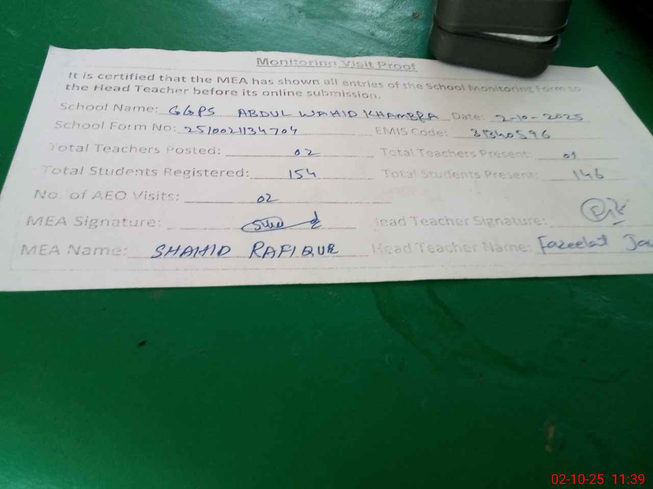 | EMIS Code: 31340596 | Name of School: GGPS ABDUL WAHID KHUMBHRA | |||