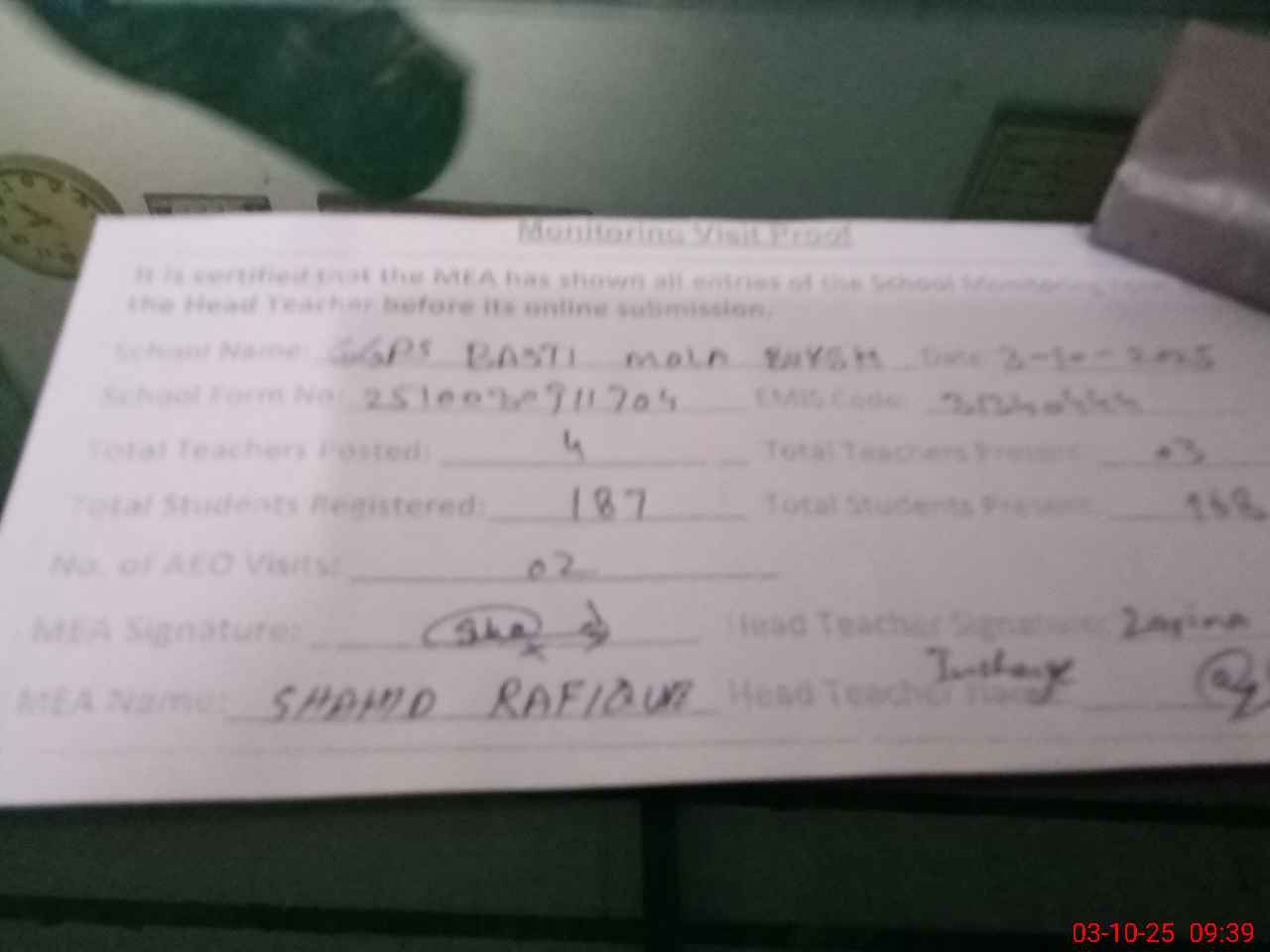 | EMIS Code: 31340444 | Name of School: GGPS BASTI MOLA BUKHSH | |||