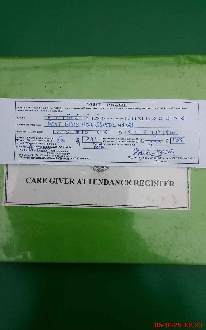 | EMIS Code: 33130306 | Name of School: GGHS CHAK NO. 49 GB | |||