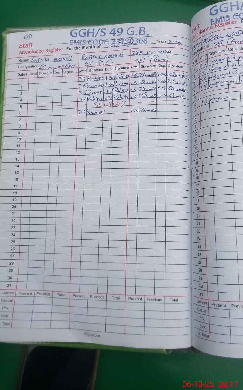 | Remarks (Use Separate Page if Required): HT saima basir and teacher mehvish Noreen suspend as per notification Marked suspend | |||||