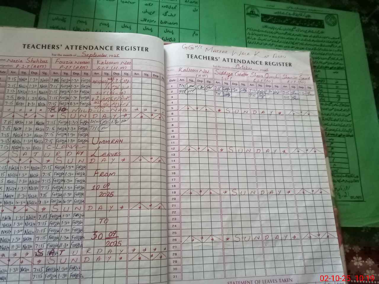 | Leave | Duty | Absent | Maternity | Medical | Ex- Pak |