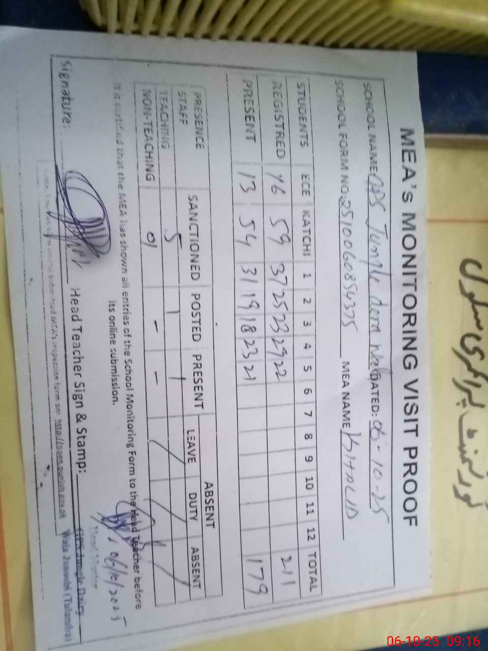 | EMIS Code: 36430225 | Name of School: GPS JUNGLE DARA WALA, TULAMBA | |||
