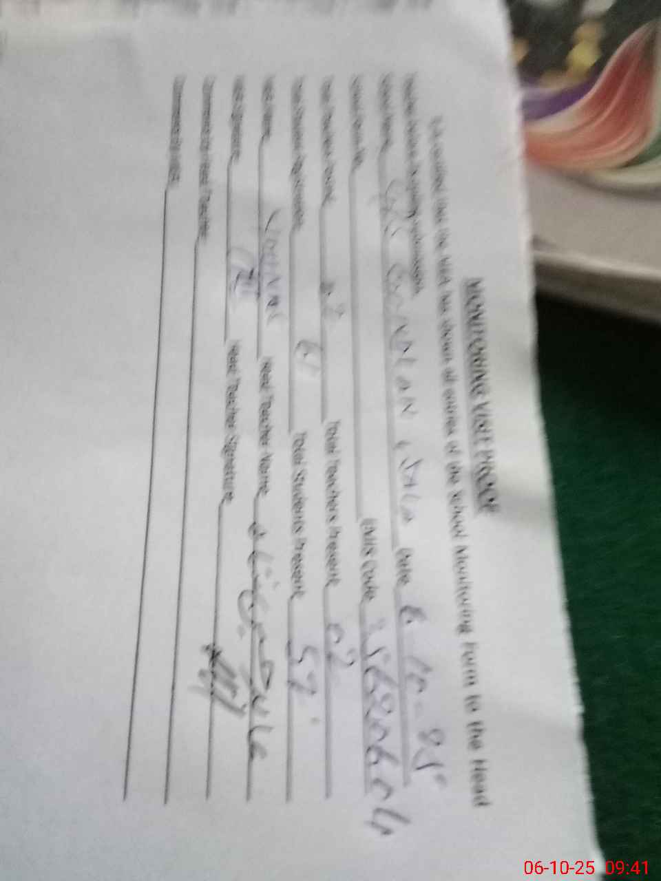 | Attendance Register | Head Teacher | MEA with School | Visit Proof |