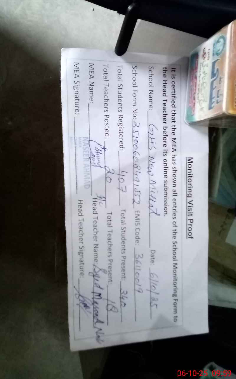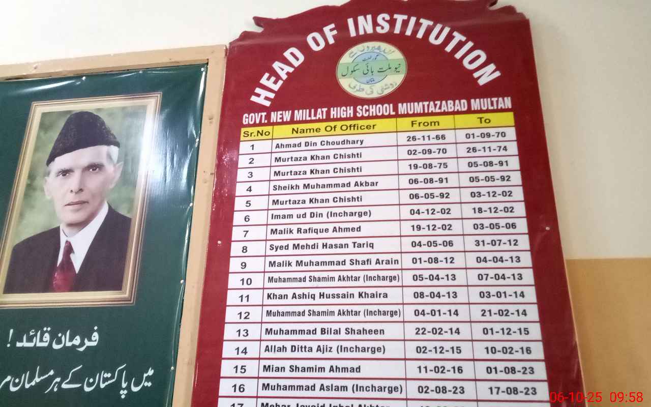 | EMIS Code: 36110019 | Name of School: GHS NEW MILLAT MUMTAZABAD MULTAN | |||