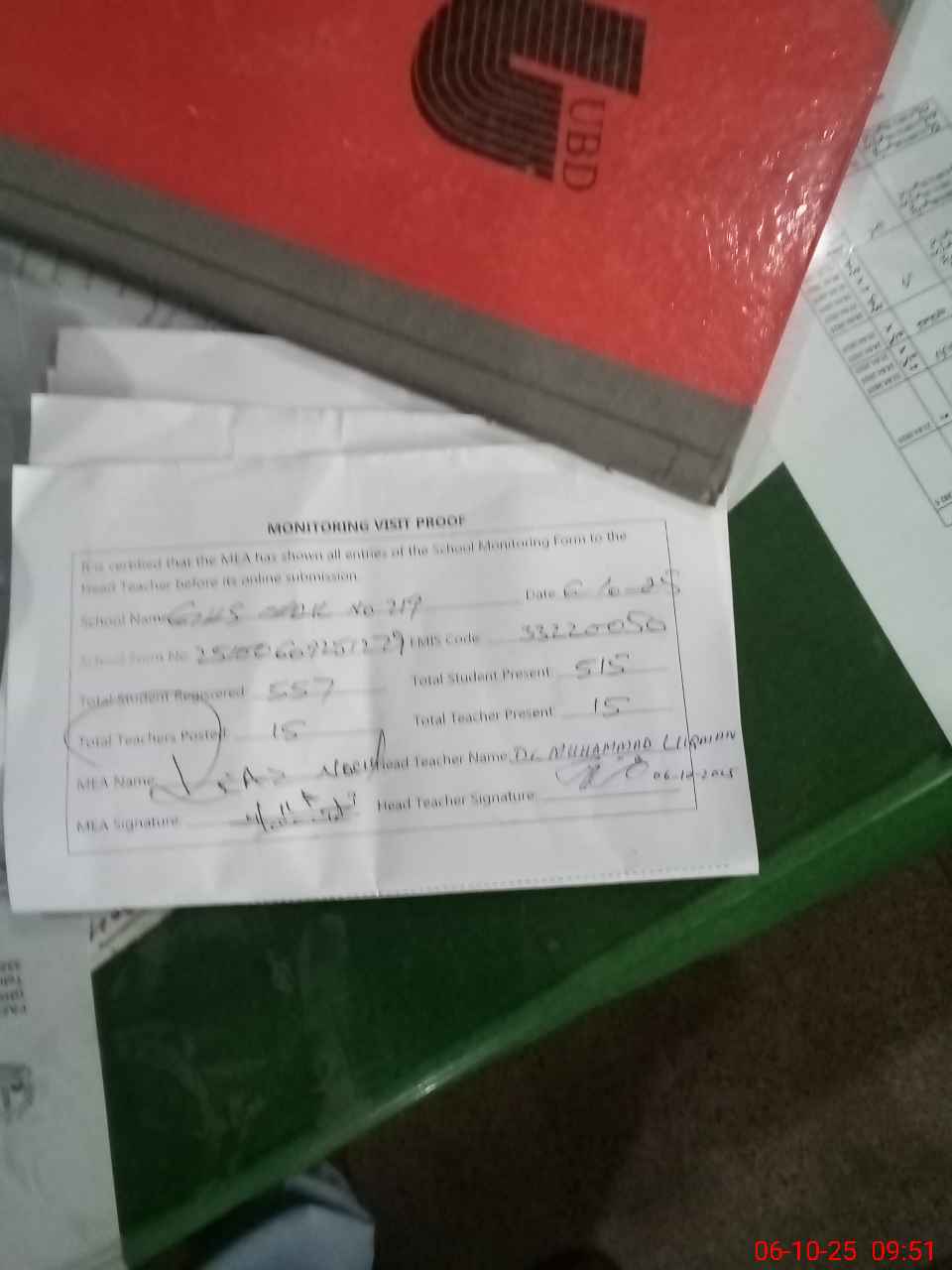 | Certified that this School was Inspected by the Undersigned MEA/DMO Today and the Information Stated Above is as Per Record. | |||||