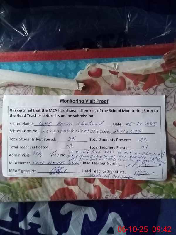 | EMIS Code: 34110638 | Name of School: GPS PEERU SHAHEED | |||
