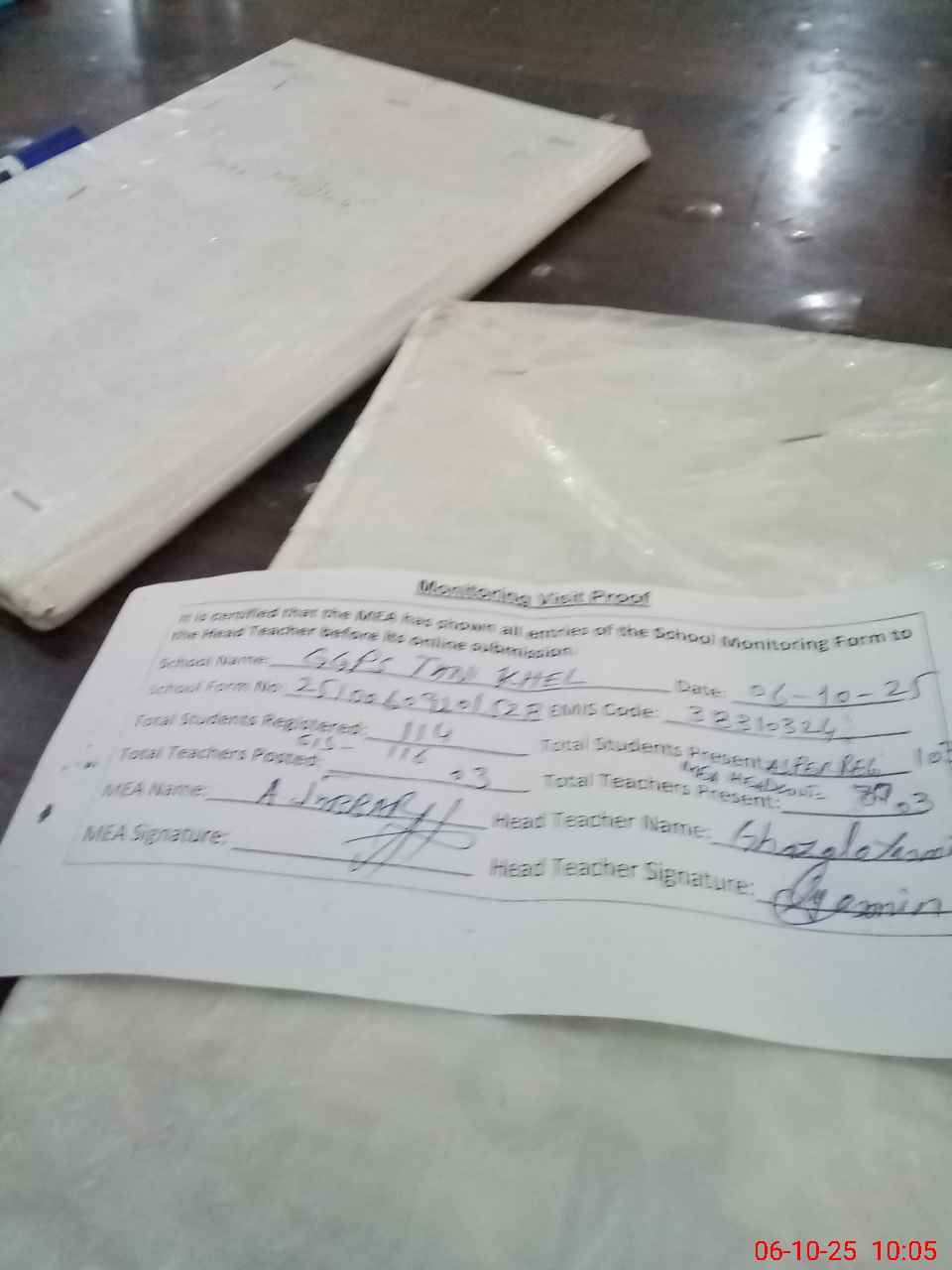| Attendance Register | Head Teacher | MEA with School | Visit Proof |