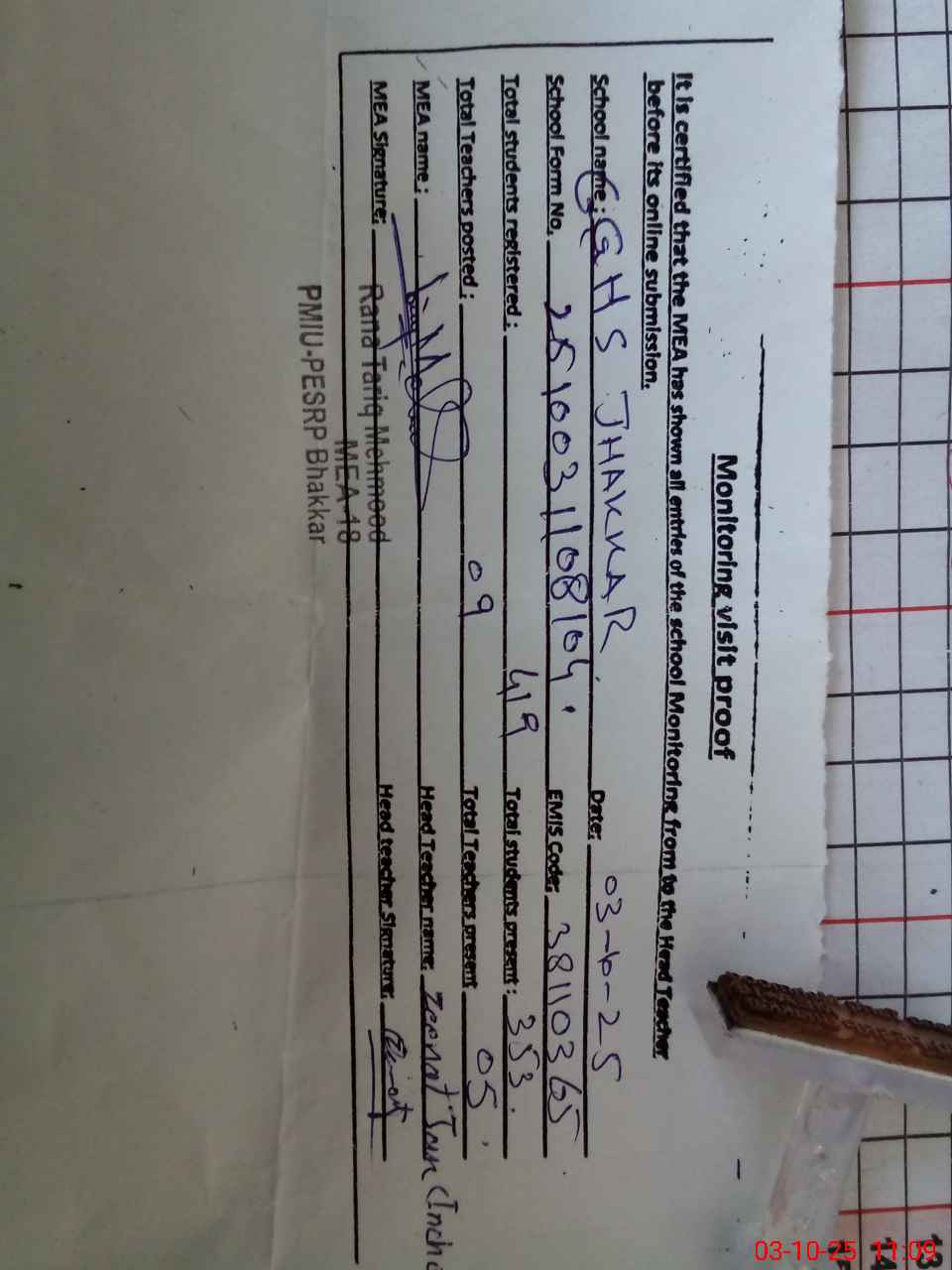 | EMIS Code: 38110365 | Name of School: GGHS JHAKKAR | |||