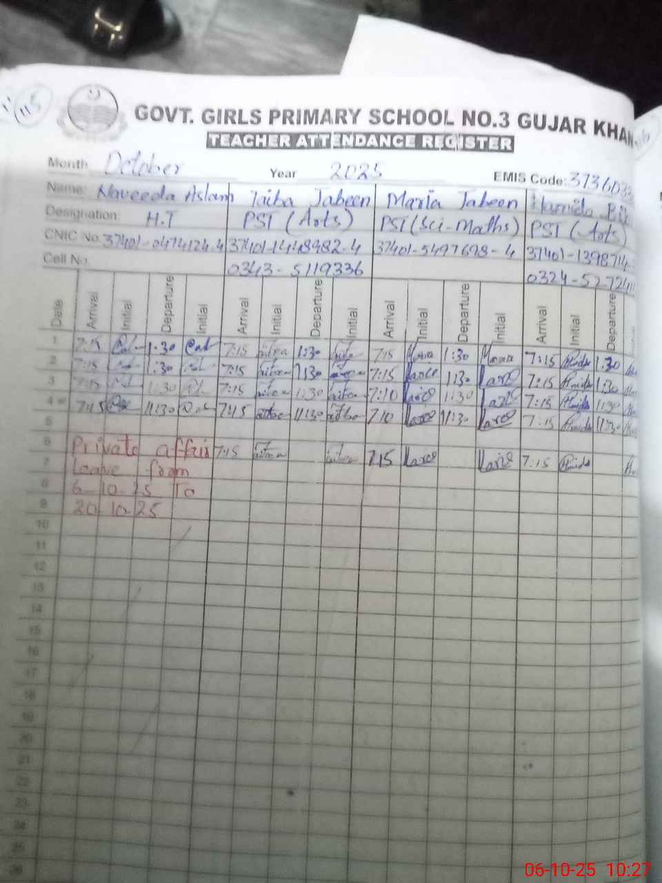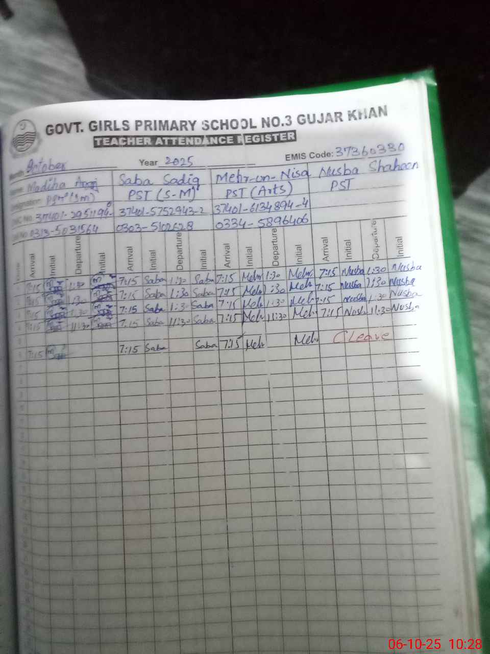 | EMIS Code: 37360330 | Name of School: GGPS NO. 3 GUJAR KHAN | |||