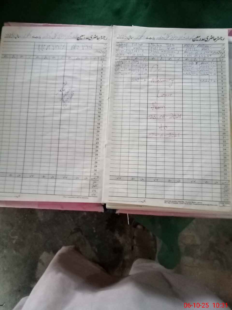 | Leave | Duty | Absent | Maternity | Medical | Ex- Pak |