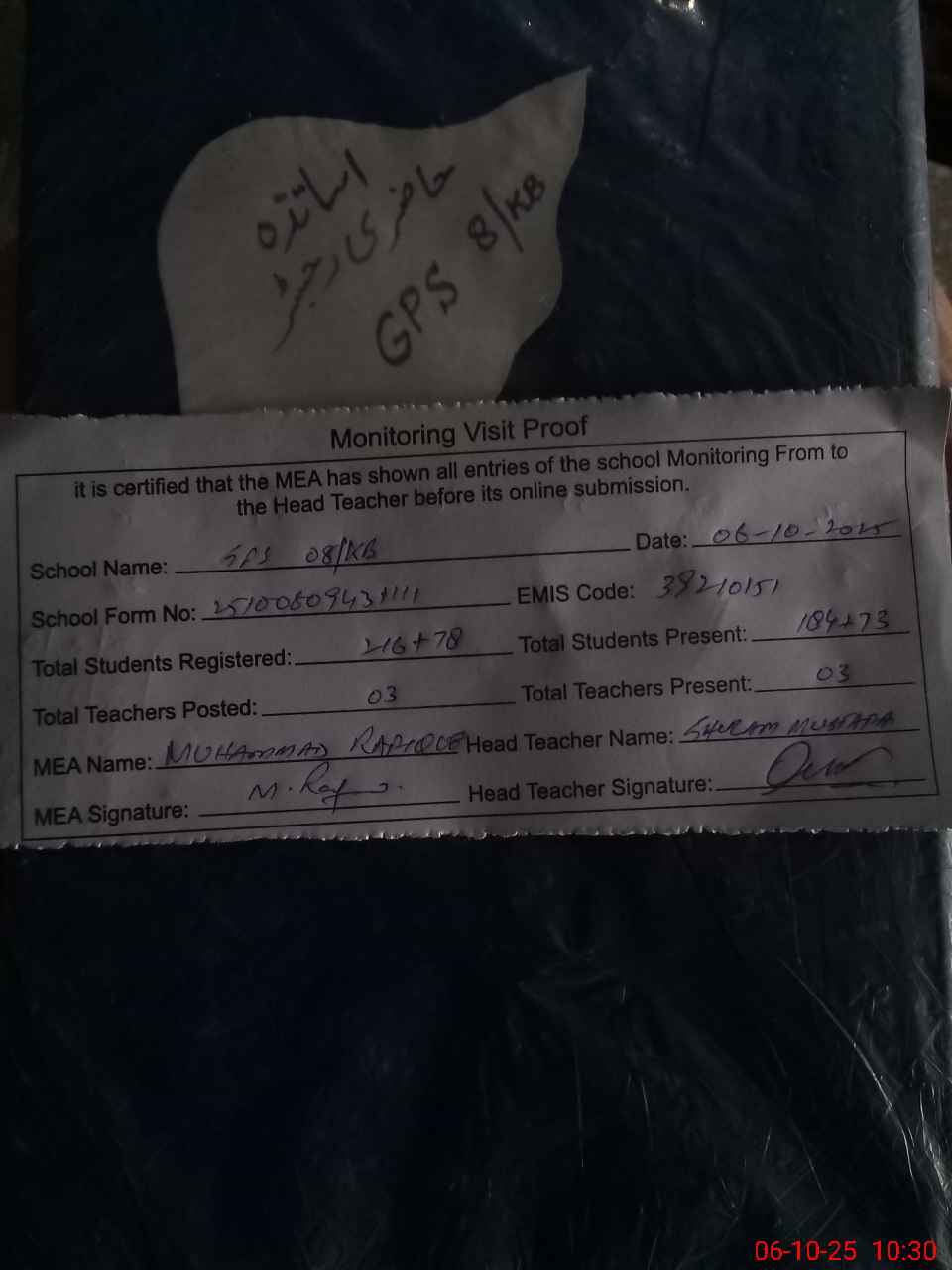 | EMIS Code: 39210151 | Name of School: GPS 8 KB HOTA | |||