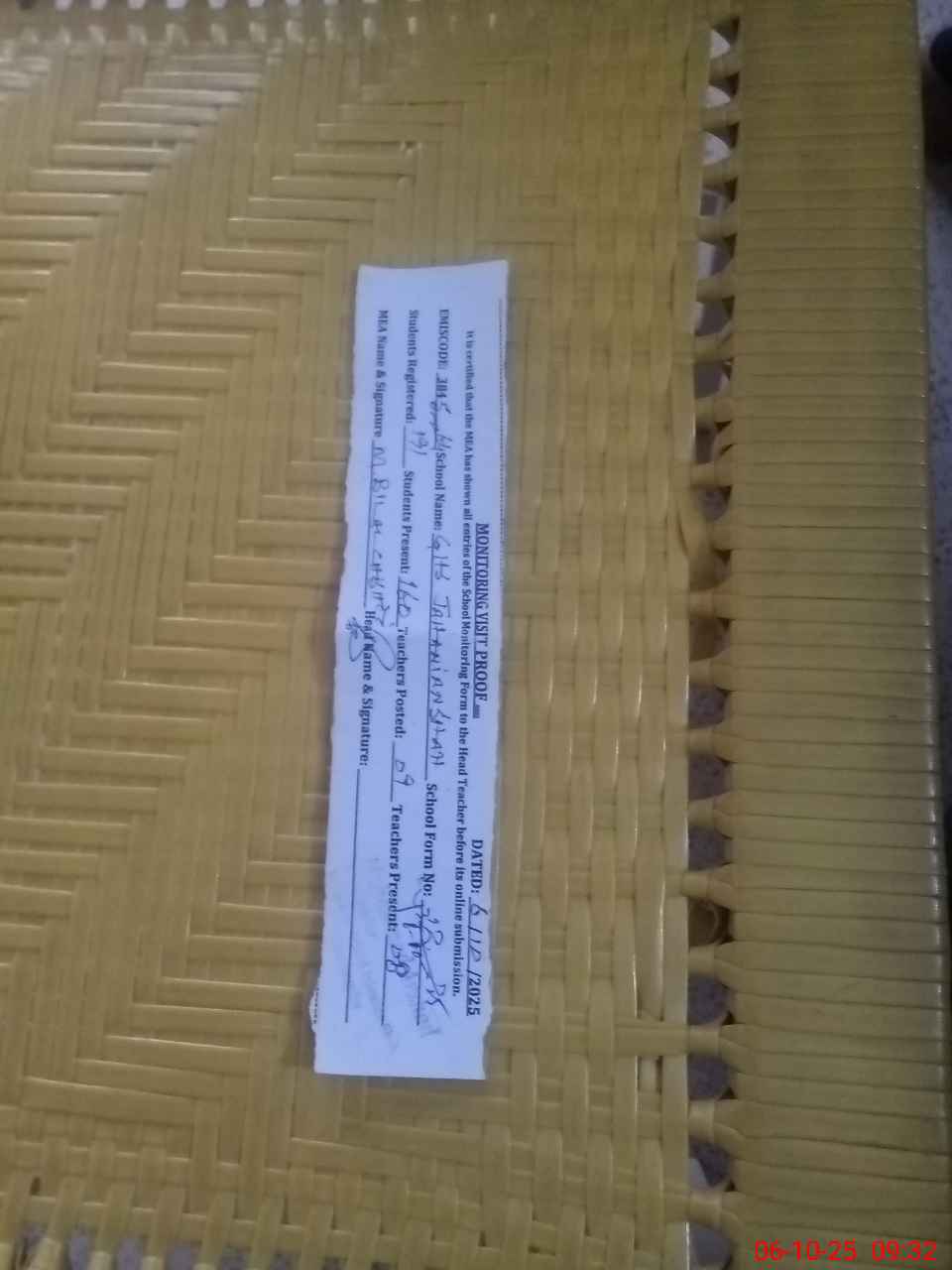 | Attendance Register | Head Teacher | MEA with School | Visit Proof |