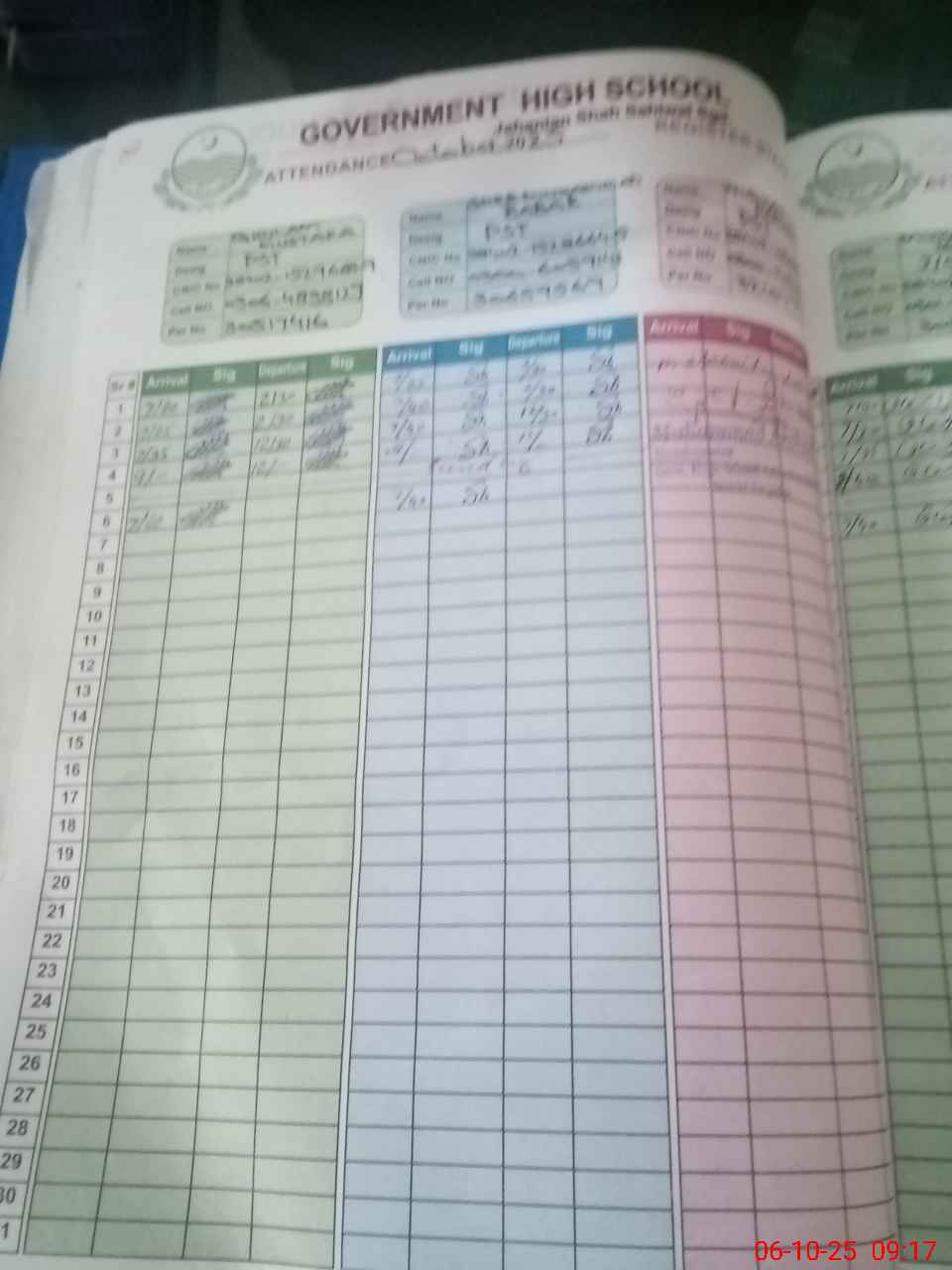 | Name: MU**** AR**** Designation: (School Headmaster's/Headmistress's) HEAD MASTER Phone/Cell Number: 03**** |