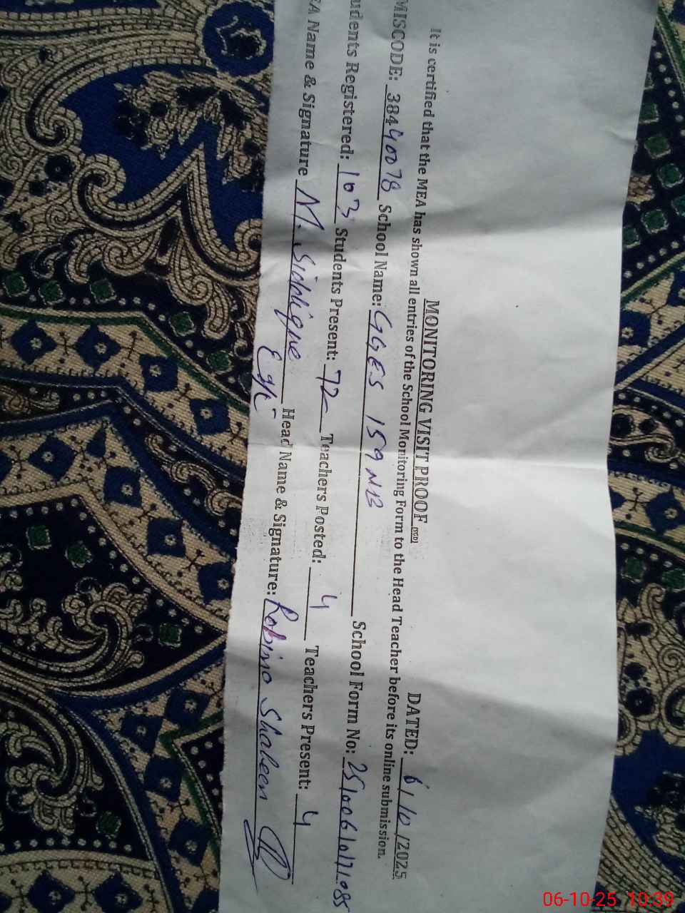 | EMIS Code: 38440078 | Name of School: GGES CHAK NO 159 NB | |||