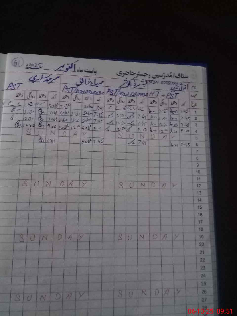 | Name: AN**** HA**** Designation: (School Headmaster's/Headmistress's) PST Phone/Cell Number: 03**** |