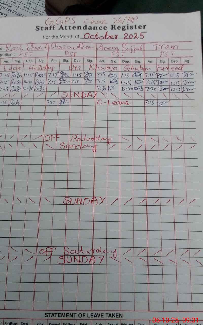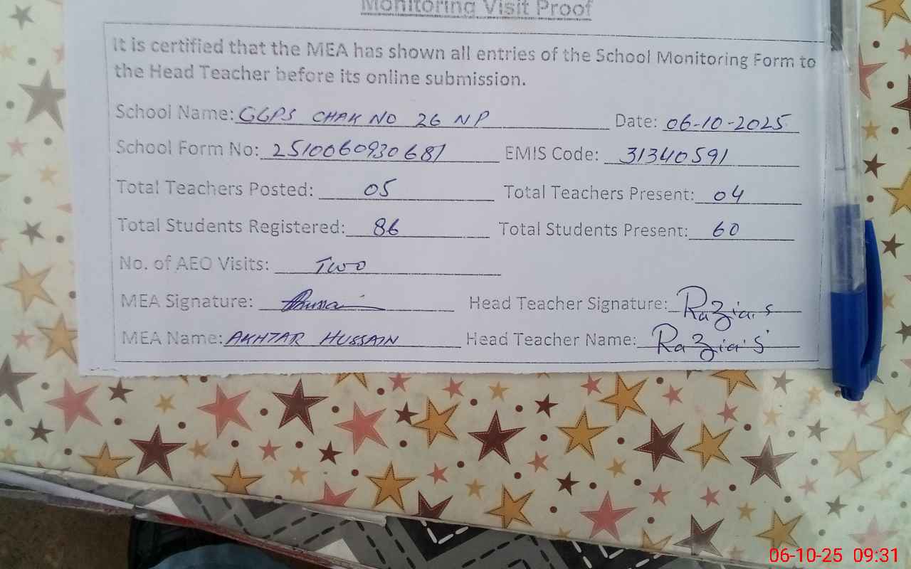 | EMIS Code: 31340591 | Name of School: GGPS CHAK NO. 26/NP | |||