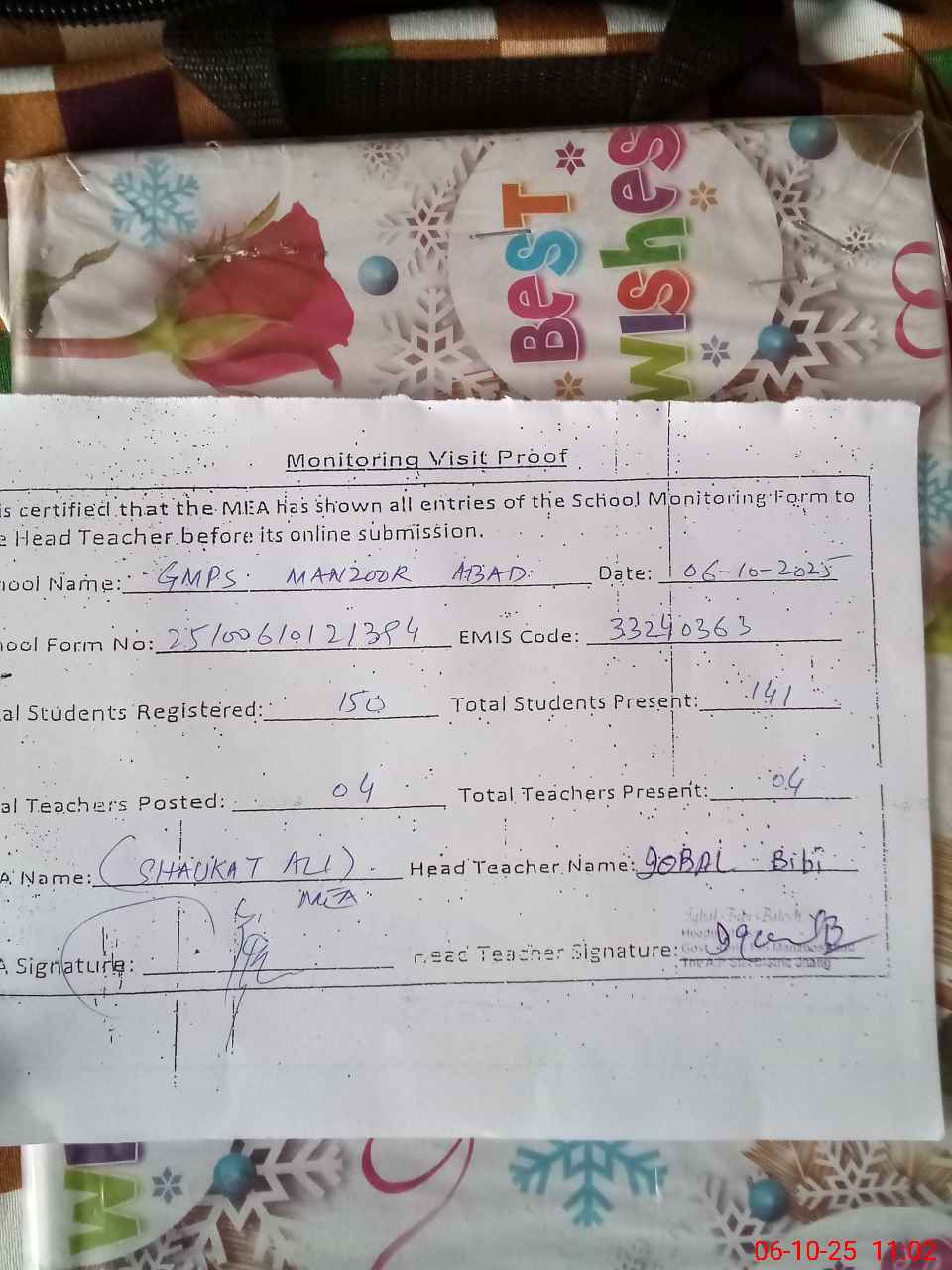 | EMIS Code: 33240363 | Name of School: GMPS MANZOOR ABAD | |||