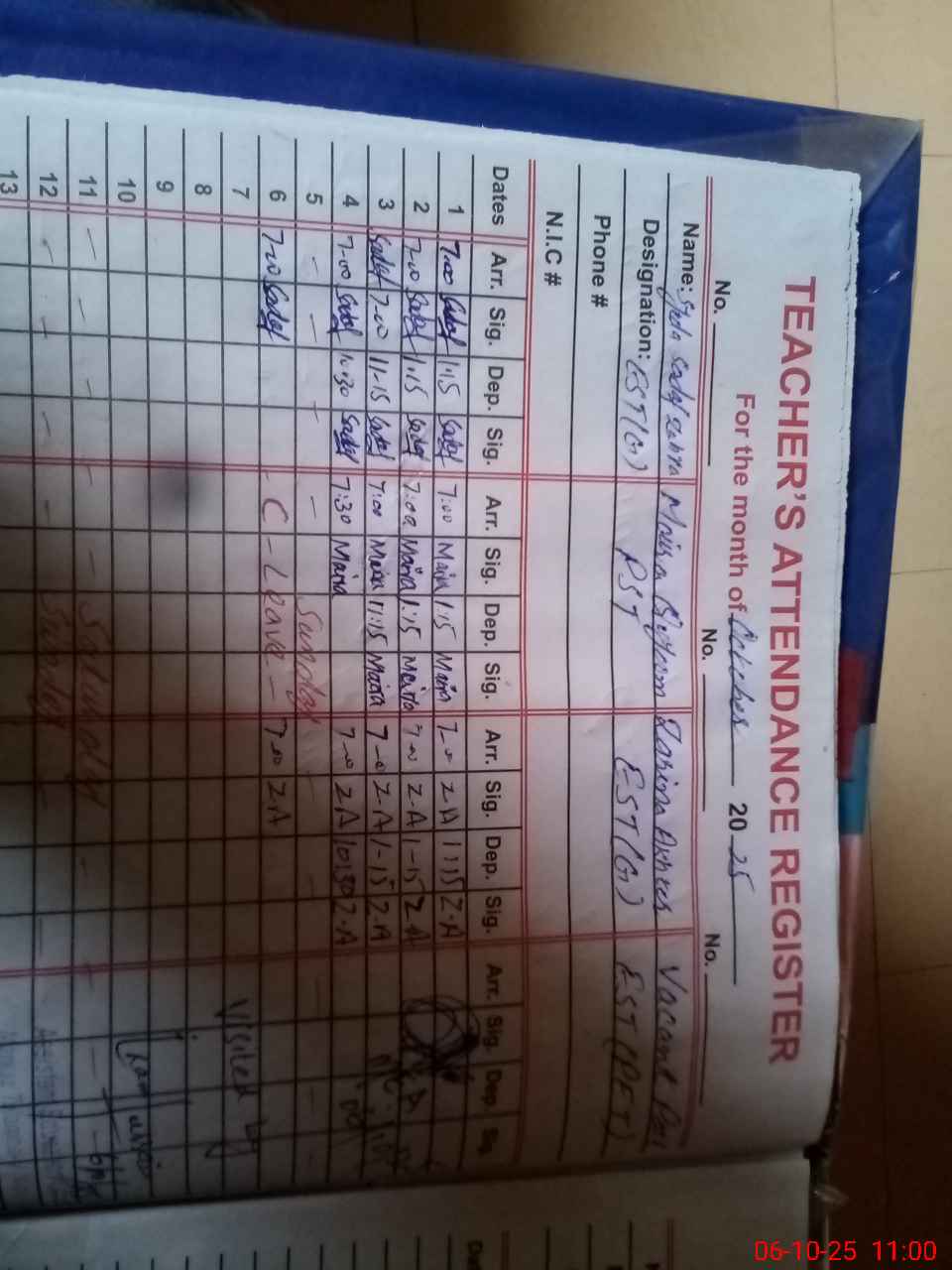 | Name: Ar**** Ba**** Designation: (School Headmaster's/Headmistress's) S.S.T.(Science) Phone/Cell Number: 03**** |