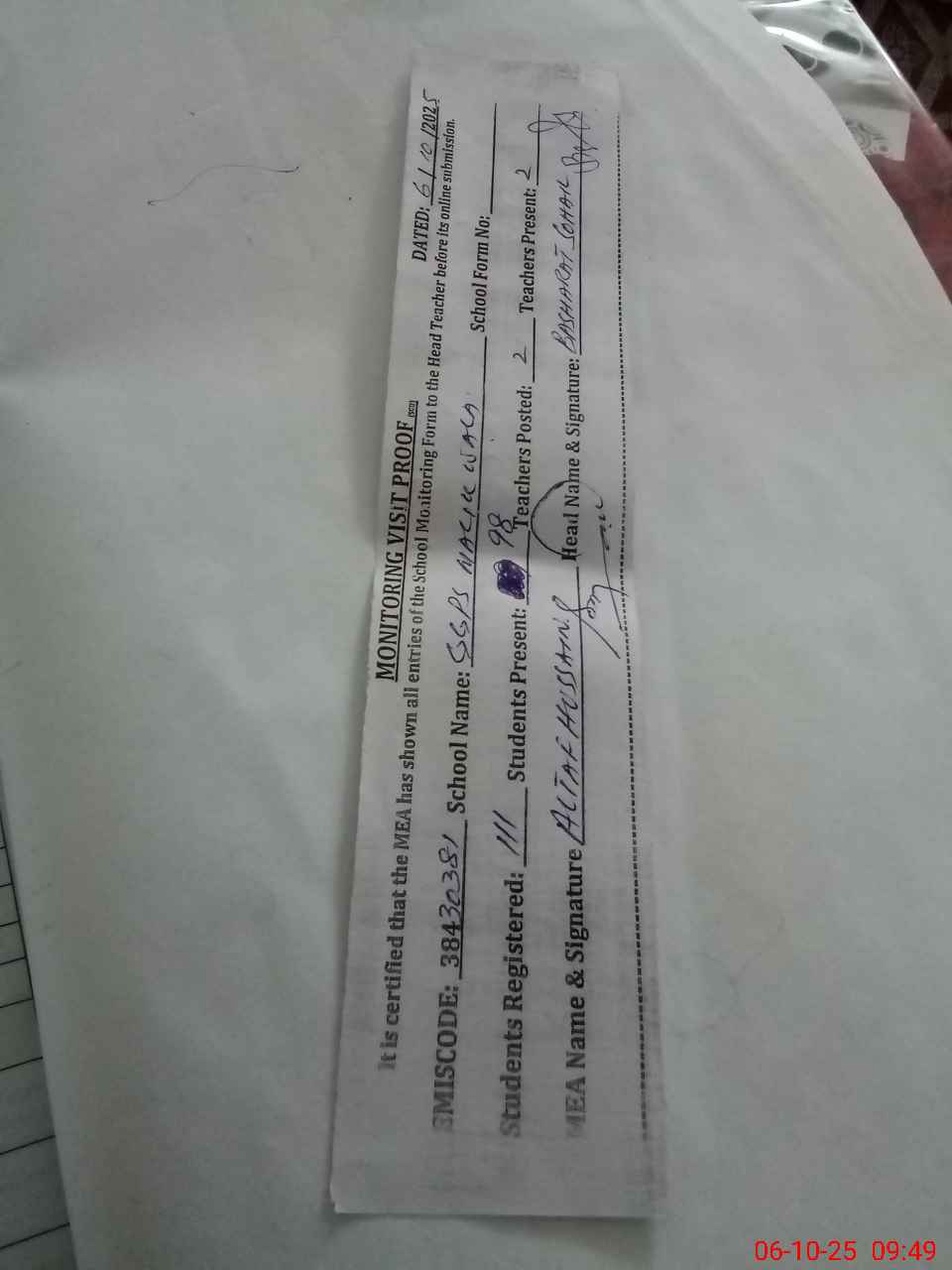 | Certified that this School was Inspected by the Undersigned MEA/DMO Today and the Information Stated Above is as Per Record. | |||||