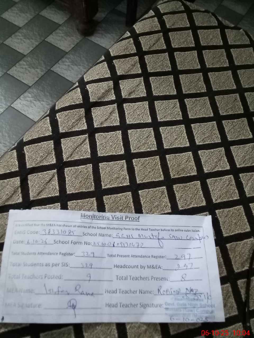 | EMIS Code: 38331085 | Name of School: GGHS Mustafa (SAW) Campus Kundian | |||