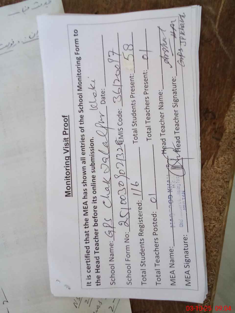 | EMIS Code: 36120097 | Name of School: GPS CHAK JALALPUR P/O JALAL PUR KHAKI | |||