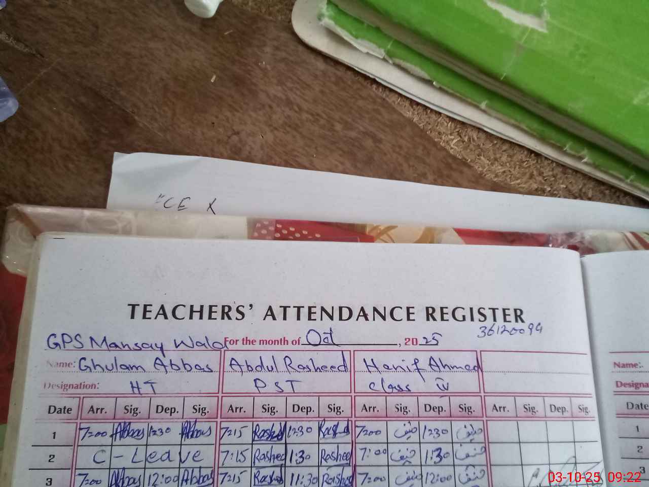 | Name: GH**** AB**** Designation: (School Headmaster's/Headmistress's) PST Phone/Cell Number: 03**** |