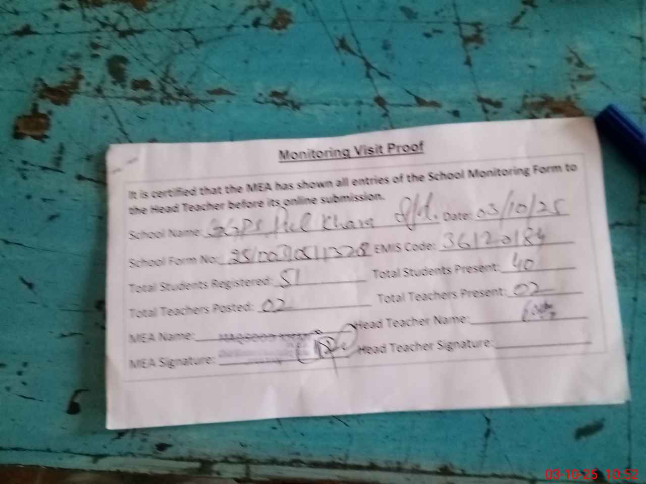 | EMIS Code: 36120184 | Name of School: GGPS PUL KHARA SHUJABAD | |||