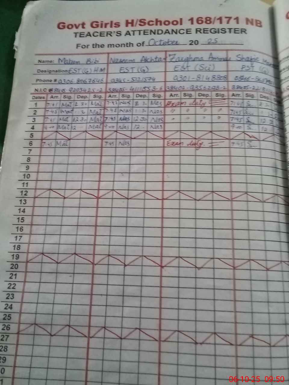 | 38**** | Za**** Am**** | 1 | 0 | 2 | 0 | 0 | 0 | 0 | 0 | 0 | 0 | Exam Duty | |