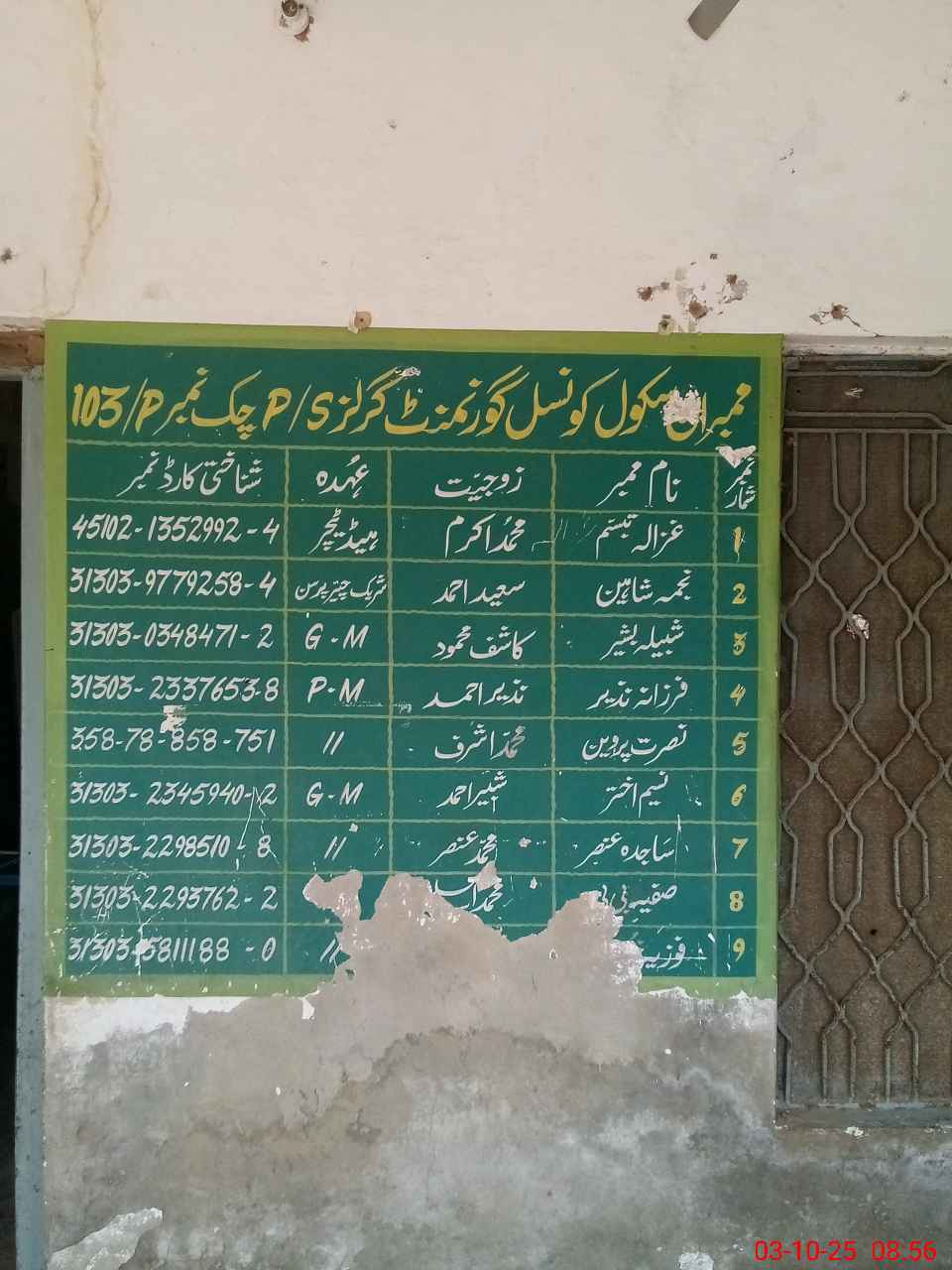 | EMIS Code: 31331229 | Name of School: GGPS CHAK NO. 103/P | |||