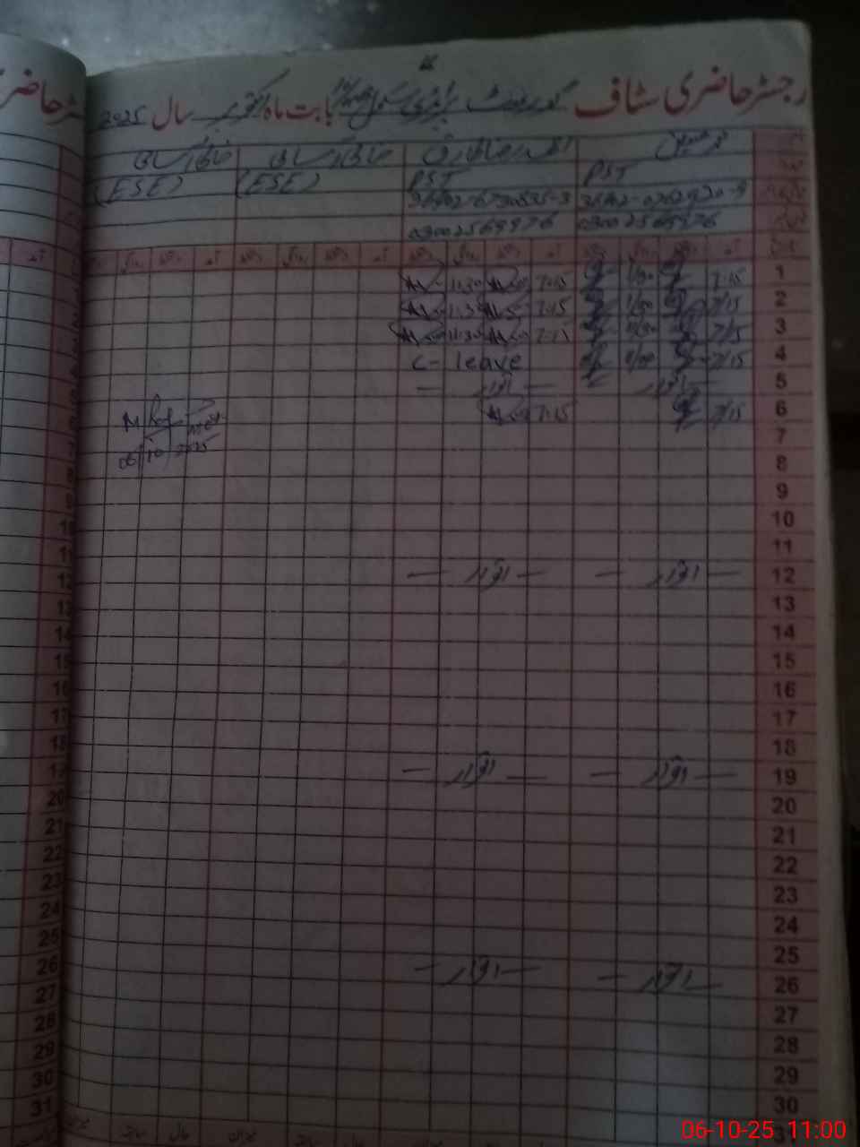 | Name: MU**** HU**** Designation: (School Headmaster's/Headmistress's) PST Phone/Cell Number: 03**** |